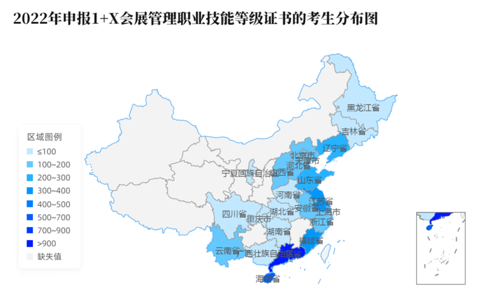 “1+X”会展管理证书搭建人才培养新平台发表时间:2023-04-18 09:39 2020年12月31日网育网(北京)国际教育科技发展中心入围教育部1+X证书试点制度第四批职业教育培训评价组织,负责开展会展管理职业技能等级证书标准的修订,师资培训和认证考评。截至目前实施情况汇总如下: 一、试点院校和考生情况 申报2021年1+X会展管理职业等级证书的试点省份25个,试点院校70所,共3728名考生考核合格并获得相应等级的证书;申报2022年1+X会展管理职业等级证书的试点省份23个,试点院校77所,共4428名考生考核合格并获得相应等级的证书。 广东省试点院校和考生数量最多。海南经贸职业技术学院两年中考生人数最多,涉及到国际贸易学院的国际经济与贸易、商务管理、连锁经营与管理专业和国际旅游学院的旅游管理、酒店管理、酒店管理与数字化运营、烹调工艺与营养、市场管理等专业,这些专业中均开设了会展相关课程,体现了为海南自由贸易港建设培养国际贸易和旅游类人才的特点,为海南国际自由贸易港建设奠定了人才基础。