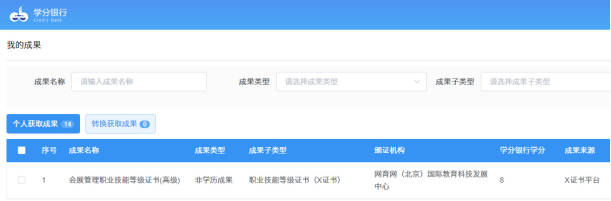 三、书证融通情况 在辽宁省学分银行的指导下,依据1+X会展管理职业技能等级标准有关内容及要求,制定学习成果认证单元,融入专业课程教学,优化书证融通人才培养方案,实现融通课程与证书的双向转换。详细转换规则收录在《辽宁省职业教育书证融通学习成果转换规则目录(2022年9月版)》。 考生在获得1+X会展管理职业技能等级证书的同时,也在职业教育国家学分银行获得8学分。